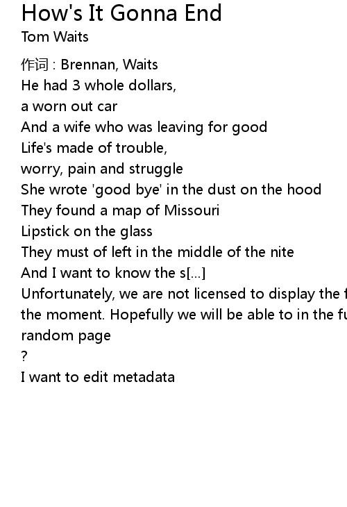 | Unfortunately, we are not licensed to display the full lyrics for this song at the moment. Hopefully we will be able to in the future. Until then, how about a | |