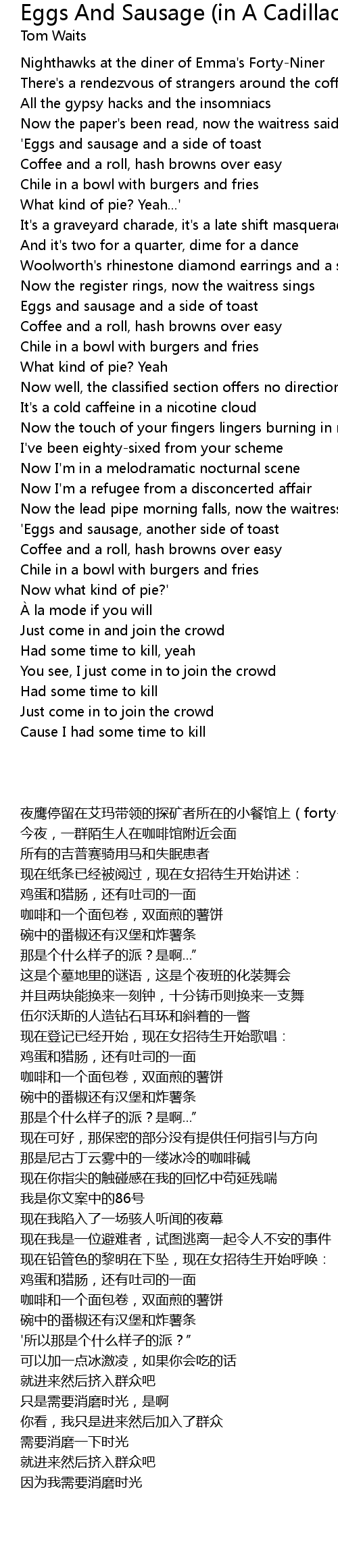 | Song | Eggs And Sausage (in A Cadillac With Susan Michelson) |