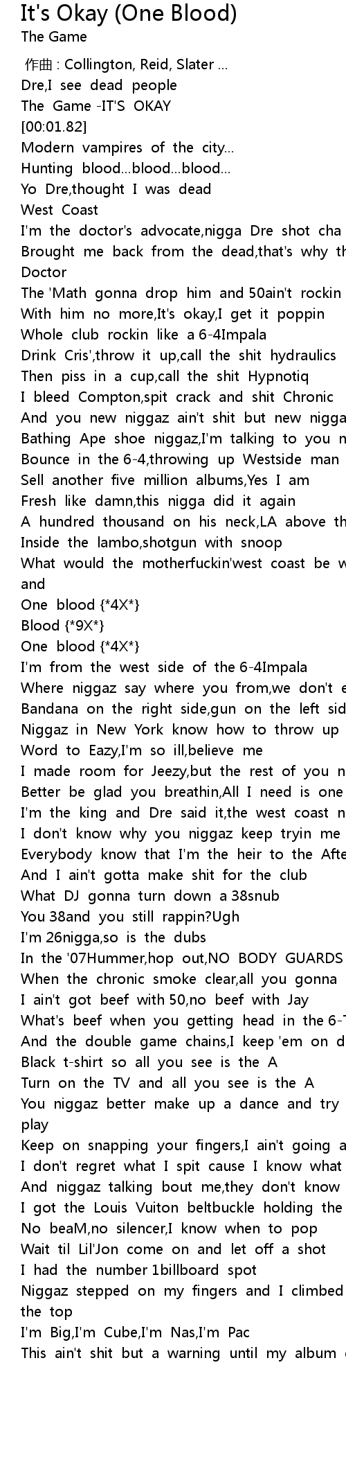 | [00:00.84] | The Game -IT'S OKAY |