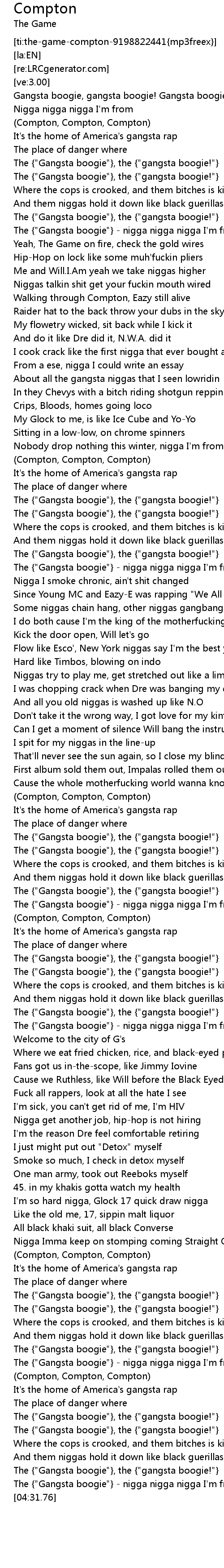 The {"Gangsta boogie"} - nigga nigga nigga I'm from (Compton) |