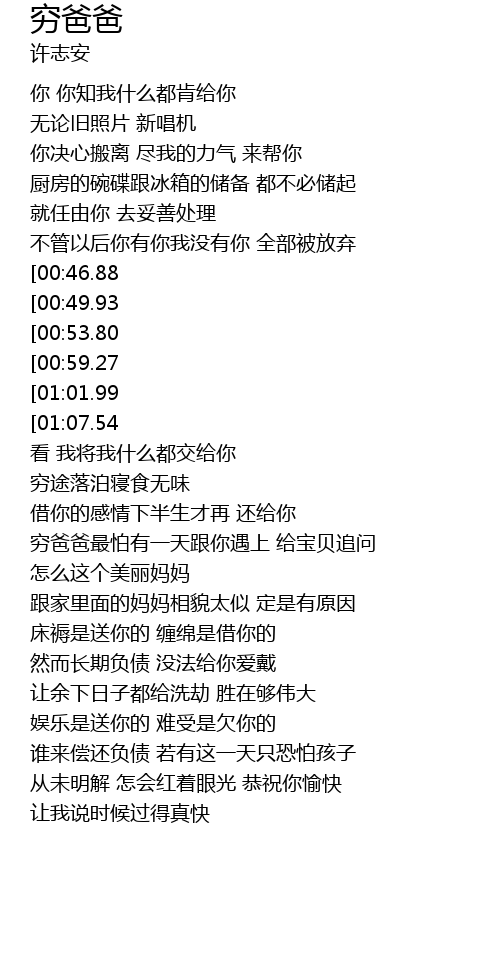 | [01:40.11] | 穷爸爸最怕有一天跟你遇上 给宝贝追问 |