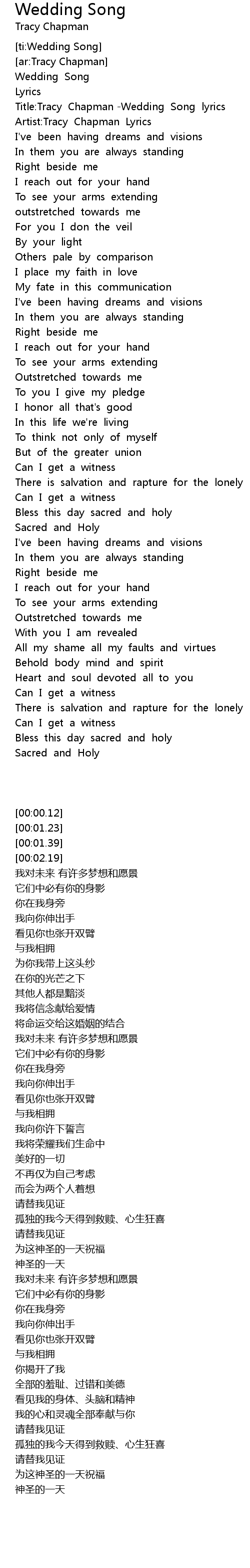 Title:Tracy Chapman -Wedding Song lyrics |