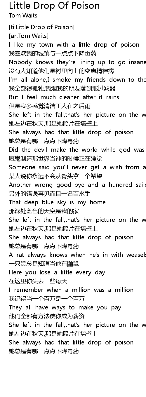 | [02:43.958] | 她总是有哪一点点下降毒药 |