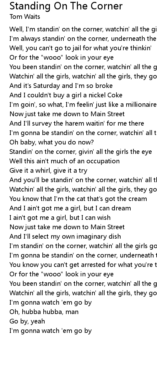 I'm gonna be standin' on the corner, watchin' all the girls go by |