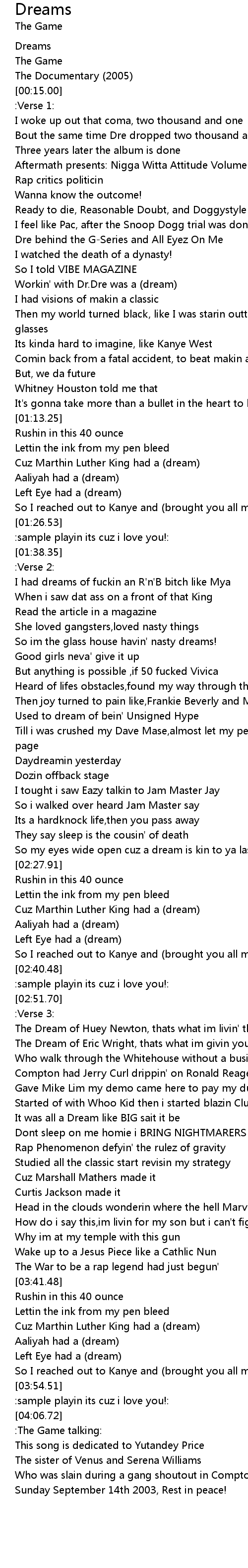 So my eyes wide open cuz a dream is kin to ya last breath |