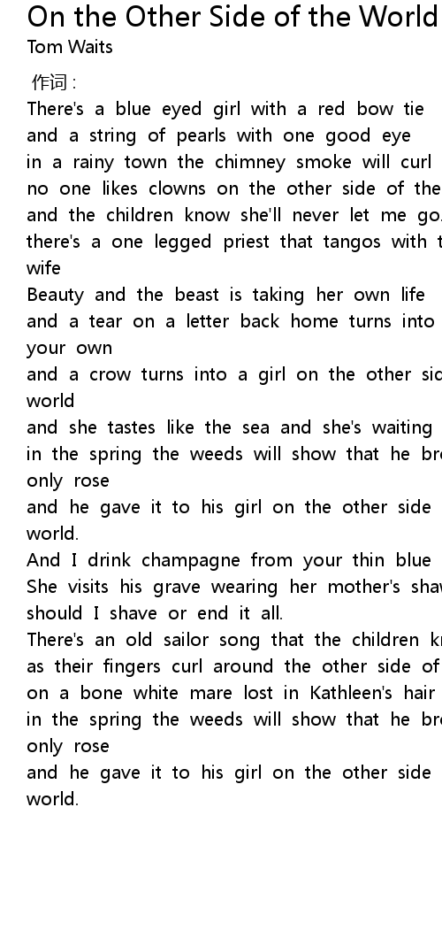 | [04:51.92] | and he gave it to his girl on the other side of the world. |