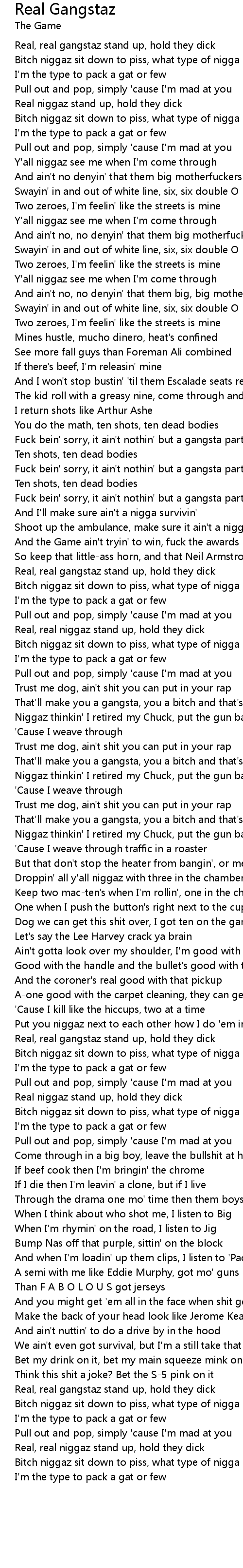 Real, real gangstaz stand up, hold they dick |