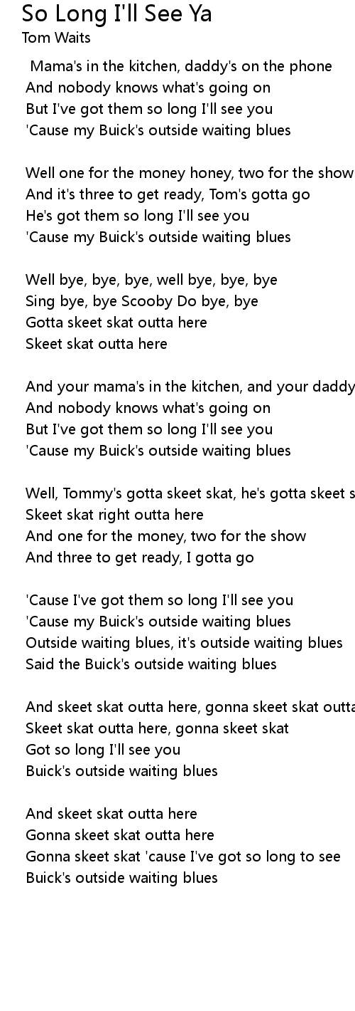Well, Tommy's gotta skeet skat, he's gotta skeet skat outta here |