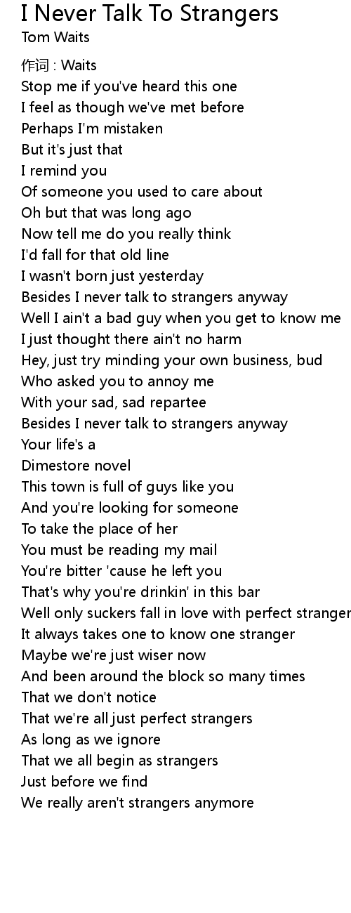 | Besides I never talk to strangers anyway | |