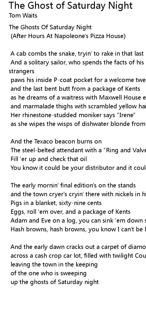 up the ghosts of Saturday night |