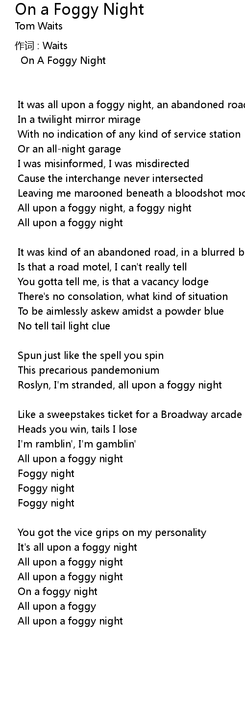 | Roslyn, I' m stranded, all upon a foggy night | |