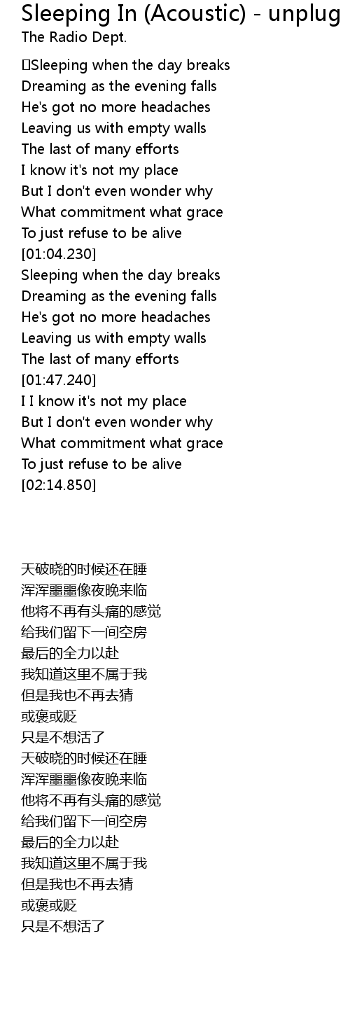 | [01:27.100] | Sleeping when the day breaks |