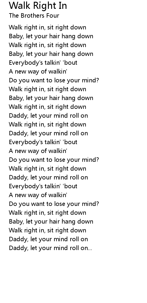 Walk right in, sit right down |