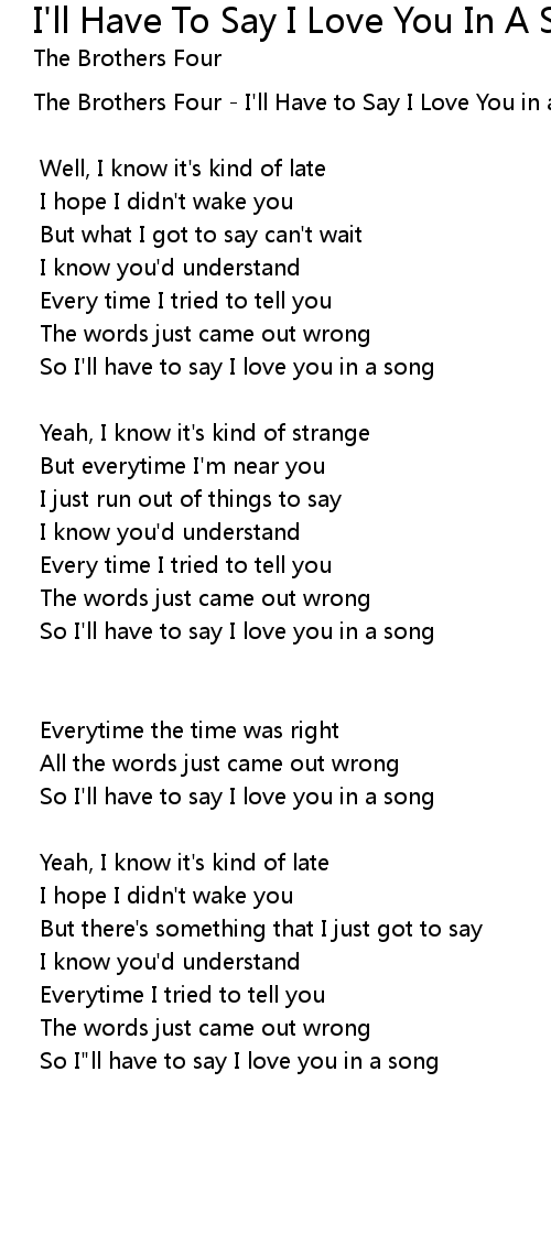 The Brothers Four - I'll Have to Say I Love You in a Song |