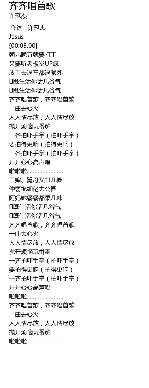| [01:49.84] | 齐齐唱首歌,齐齐唱首歌 |