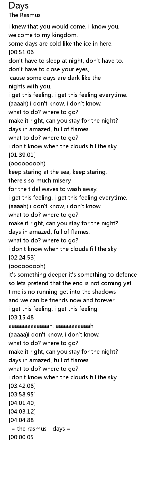 | [03:00.08] | aaaaa i don t know, i don t know. |