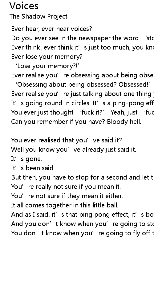 | Ever realise you' re just talking about one thing yeah, and really you' re just thinking about something completely, completely different? | |