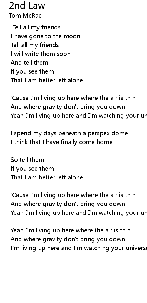 | Yeah I'm living up here and I'm watching your universe cooling down | |