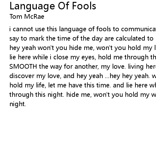 | i cannot use this language of fools to communicate with you. the things that you say to mark the time of the day are calculated to bemuse. and hey yeah ...hey hey yeah won't you hide me, won't you hold my life, let me have this time. and lie here while i close my eyes, hold me through this night. one good day will | |