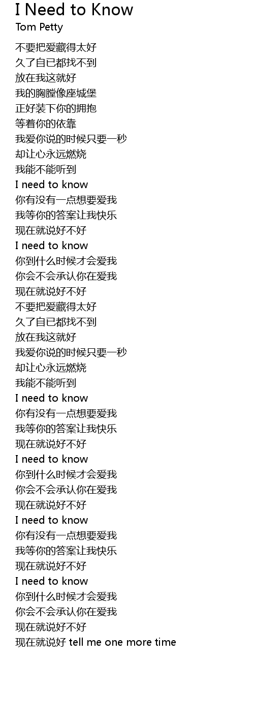 | [03:11.05] | xian zai jiu shuo hao tell me one more time |