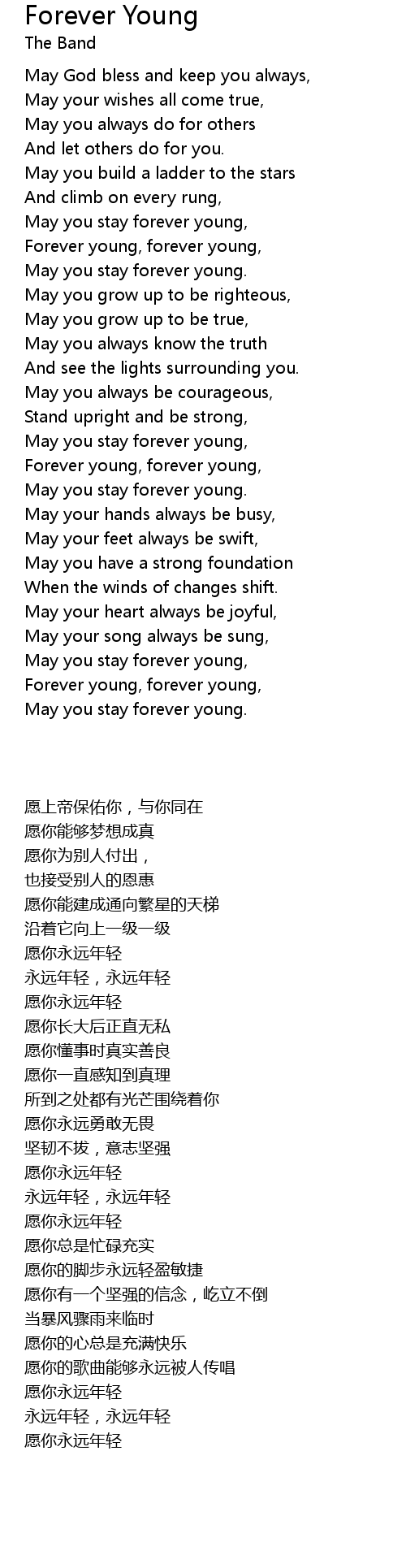 May you stay forever young, |