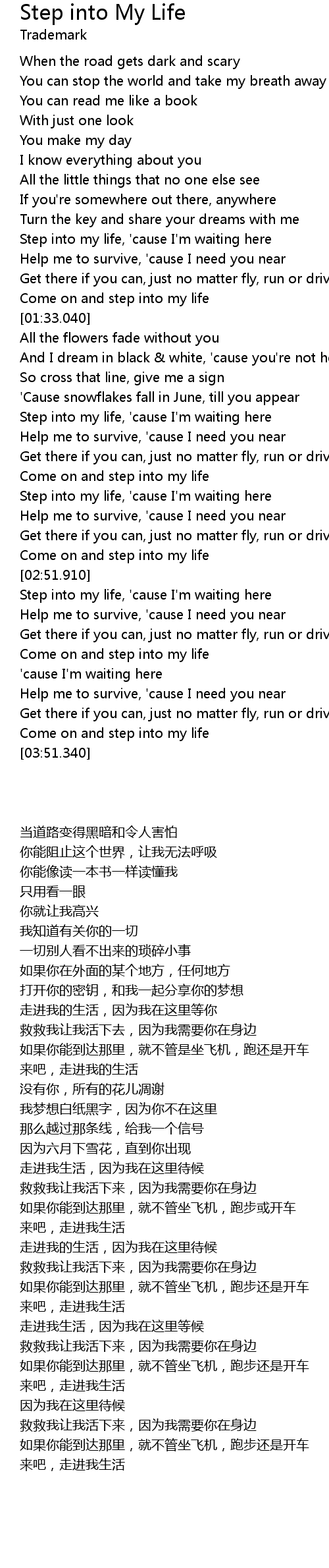 | [03:01.810] | Step into my life, 'cause I'm waiting here |