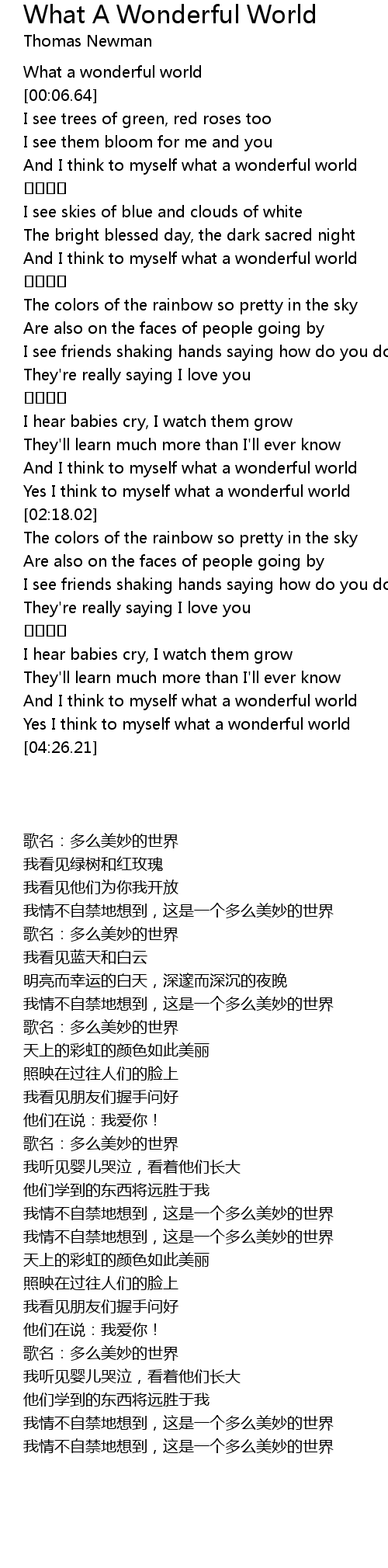 | [02:06.14] | Yes I think to myself what a wonderful world |