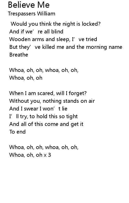 | Song | Believe Me |