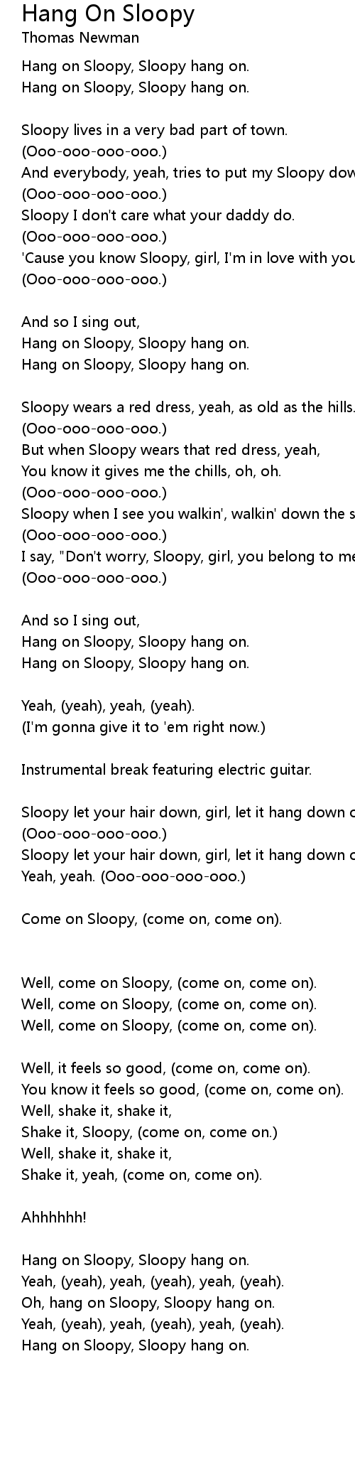 I say, "Don't worry, Sloopy, girl, you belong to me."