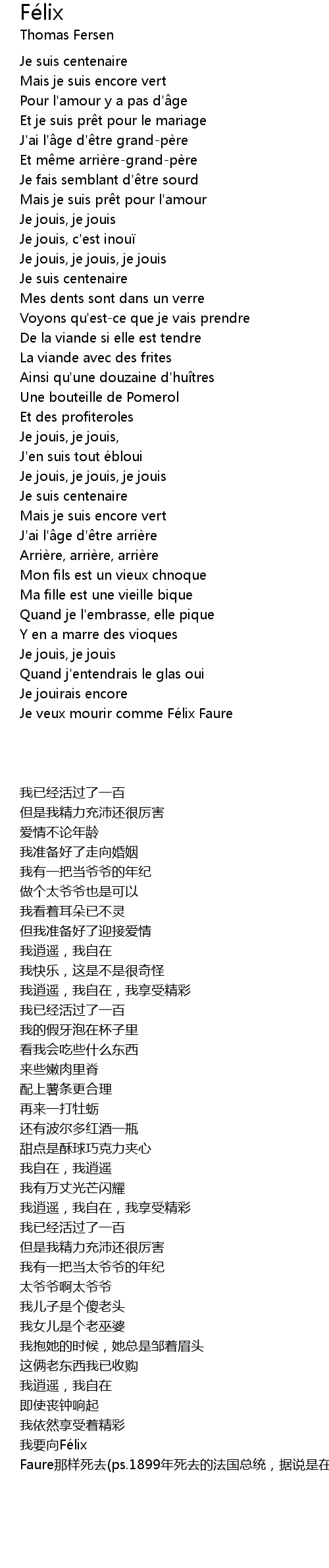 | [02:15.71] | Je veux mourir comme Félix Faure |