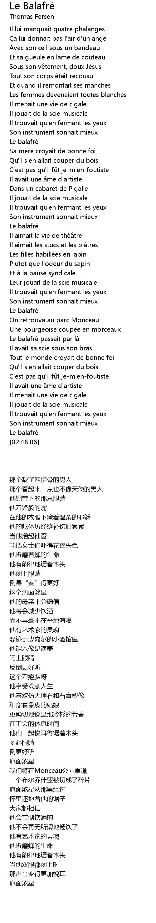 | [02:22.72] | Qu'il s'en allait couper du bois |