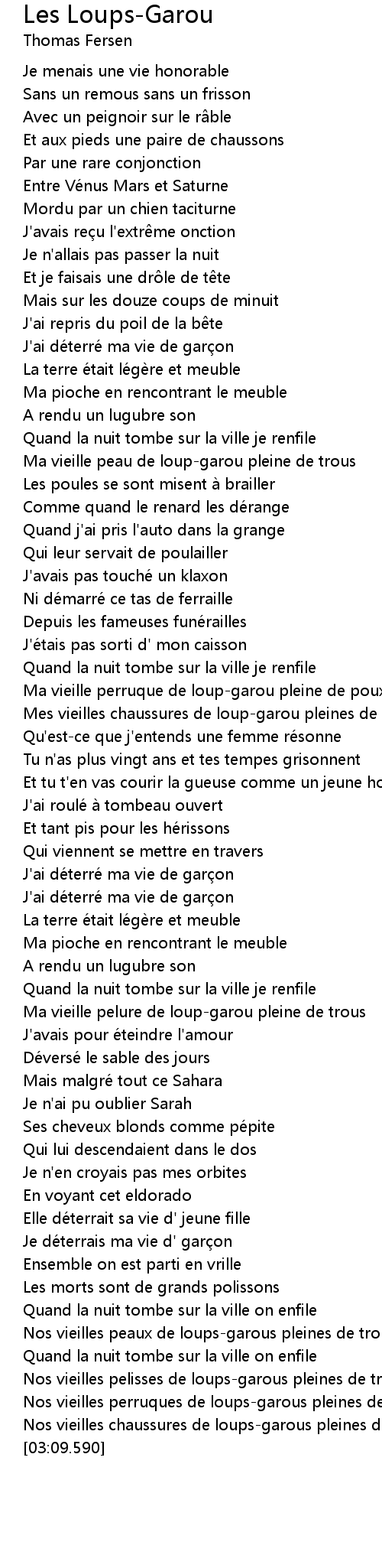 | [00:50.300] | Ma vieille peau de loup-garou pleine de trous |