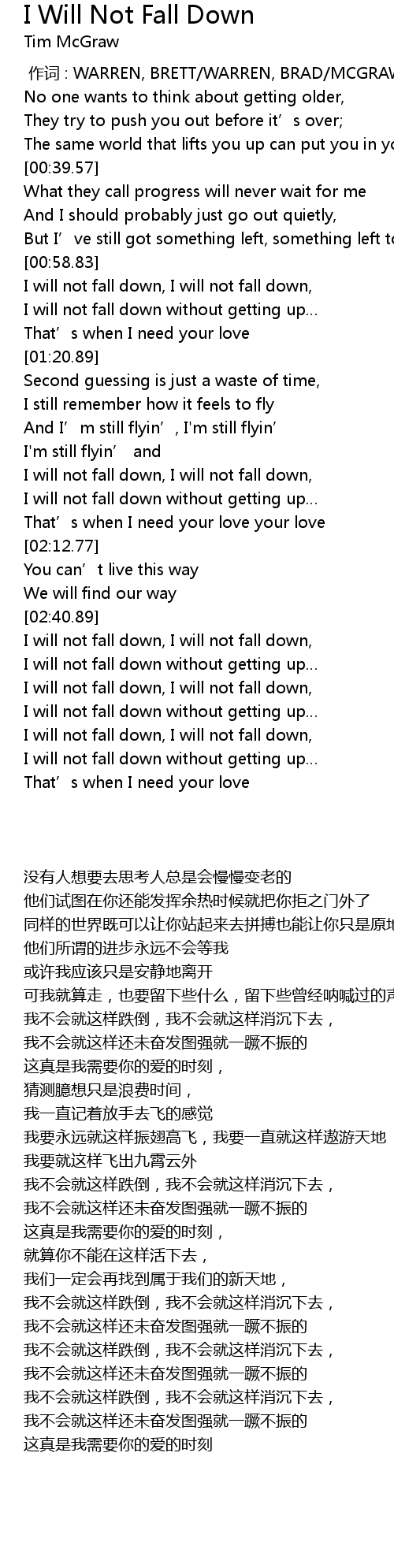 | [01:54.33] | I will not fall down without getting up |