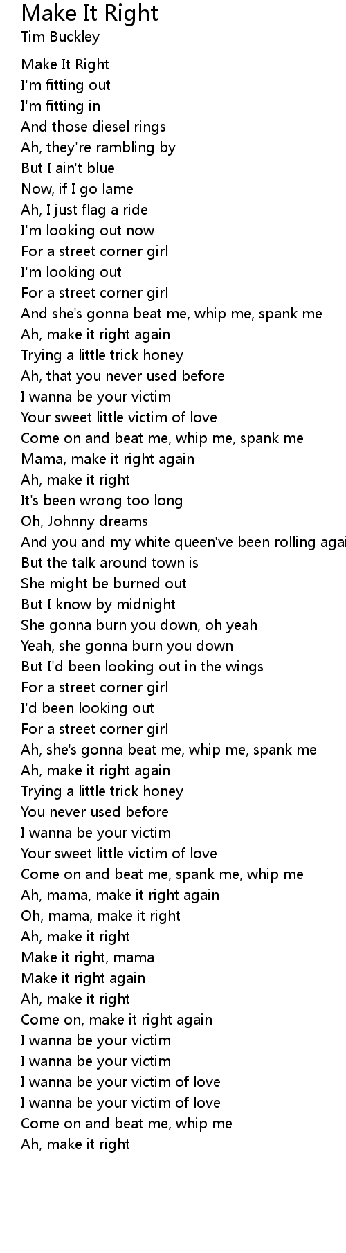 Come on, make it right again |