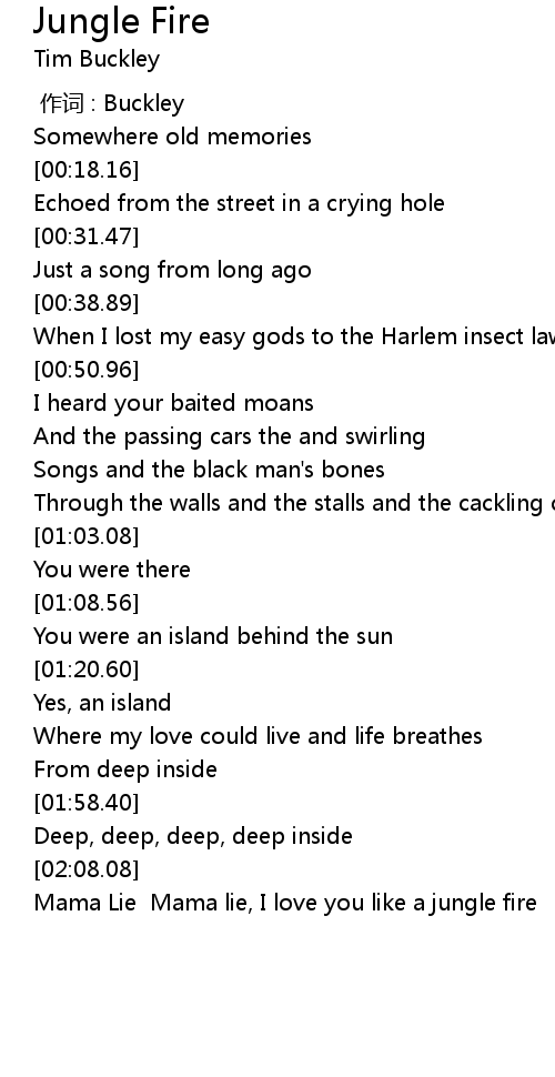 | [02:15.45] | Mama Lie Mama lie, I love you like a jungle fire |