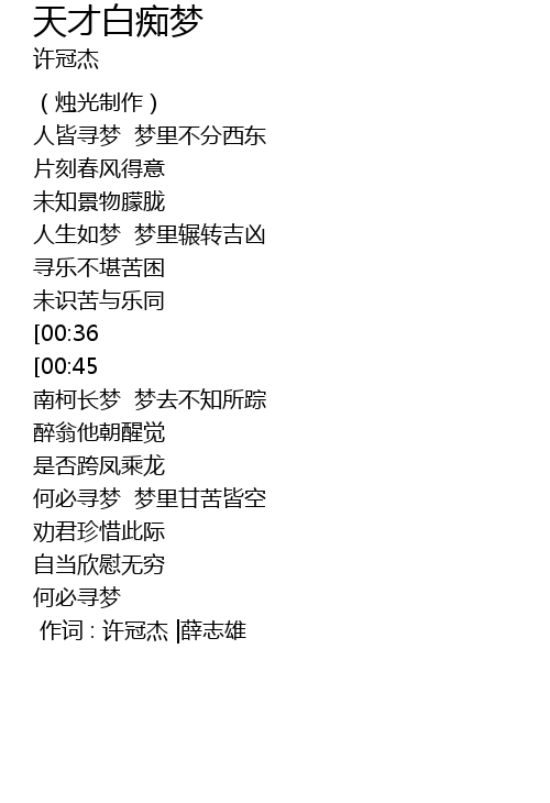 | [00:00.00] | 作词 : 许冠杰 |薛志雄 |