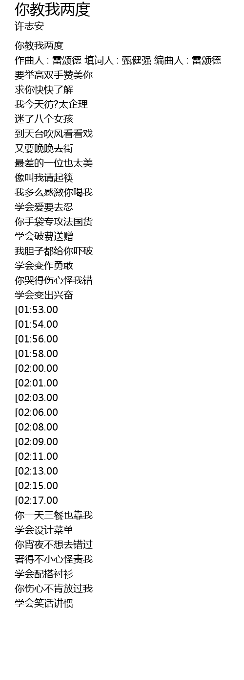 | [02:53.00][02:11.00][01:16.00] | 你教我有两度 |