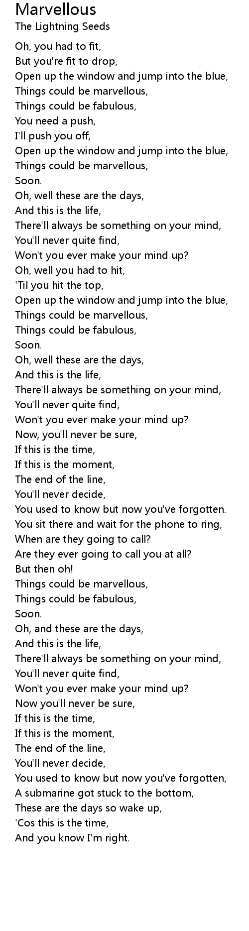 Things could be marvellous, |