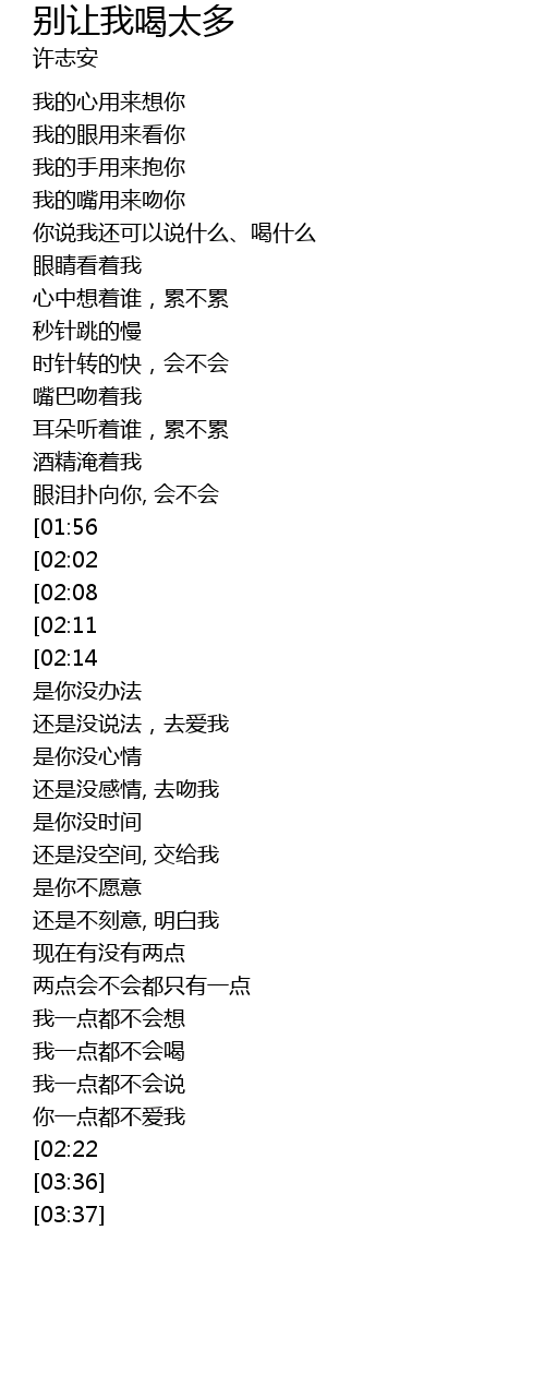 | [02:58][02:08][01:05] | 别让我醉的太过 |