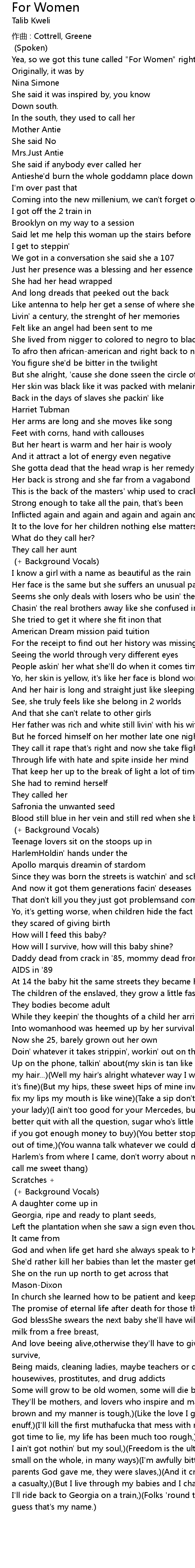 | Woman singing in the background[Talib Kweli] (+ Background Vocals) | |