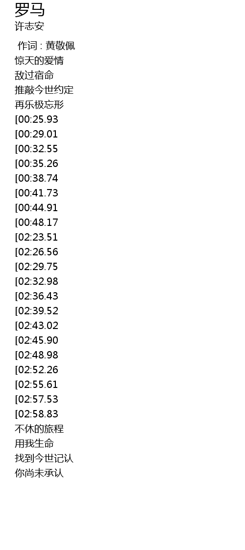 罗马 luo ma Lyrics
