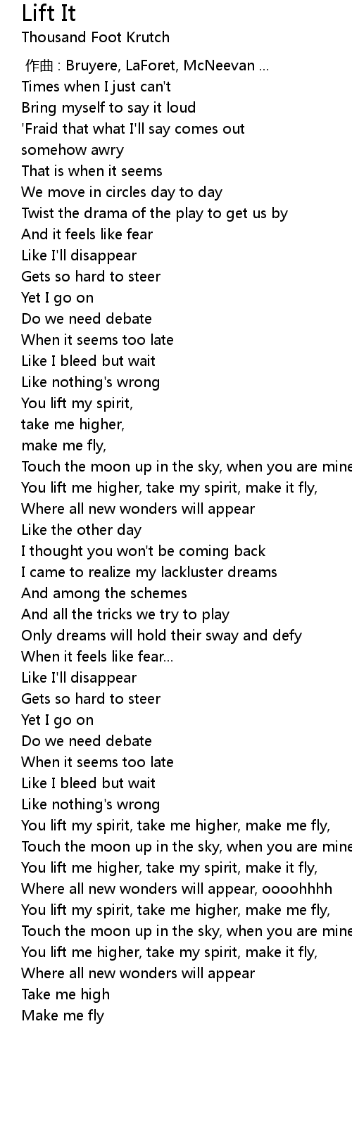 | [03:56.62] | You lift my spirit, take me higher, make me fly, |