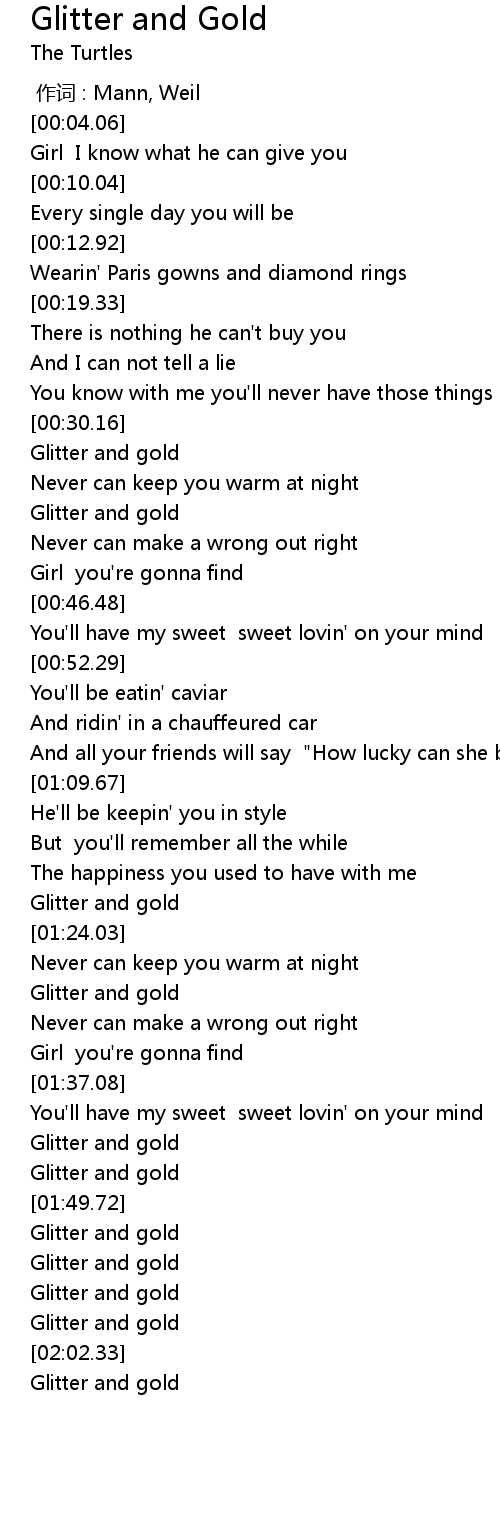| [02:02.93] | Glitter and gold |