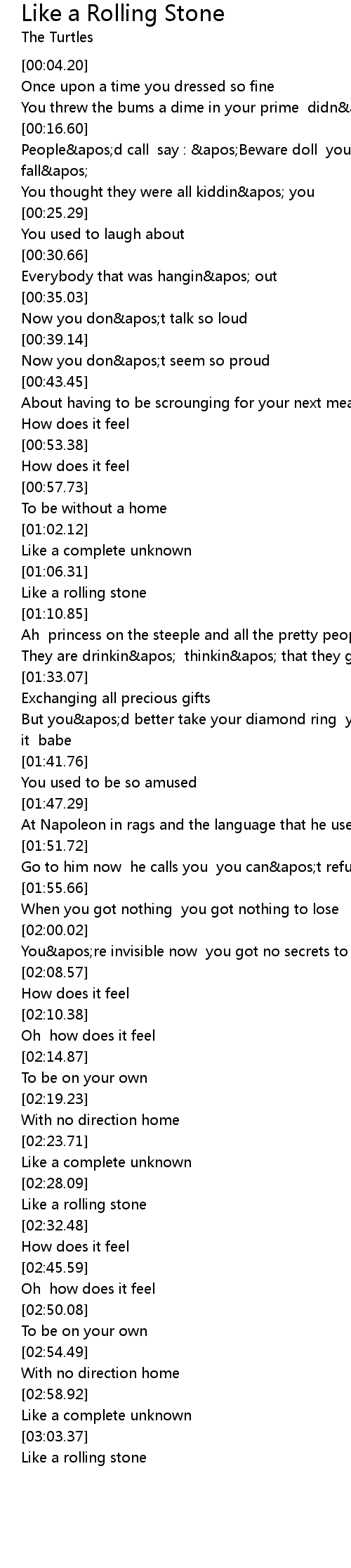 | [00:11.38] | You threw the bums a dime in your prime didn't you |