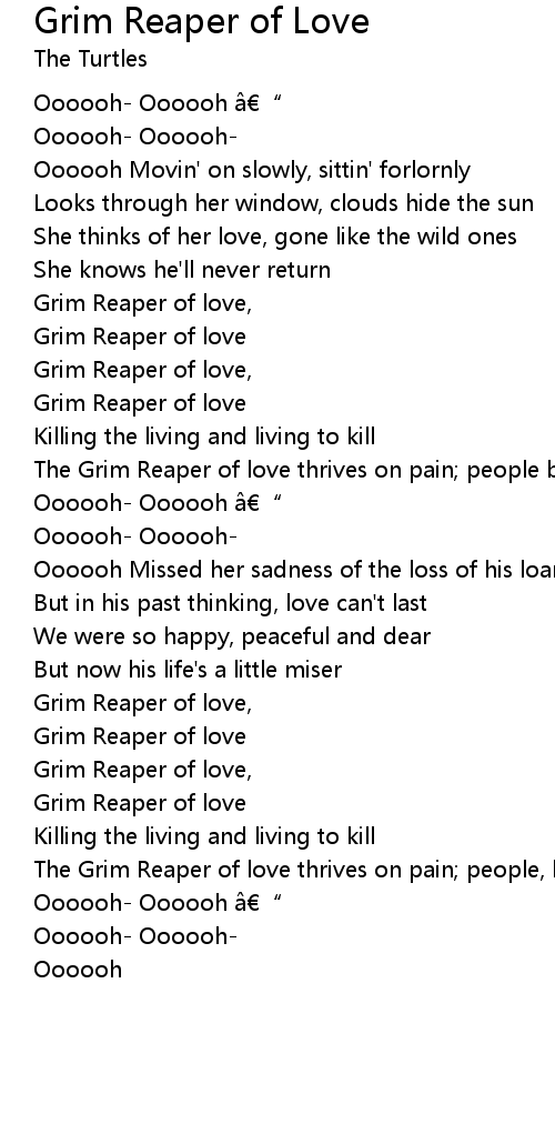 | The Grim Reaper of love thrives on pain; people, beware | |