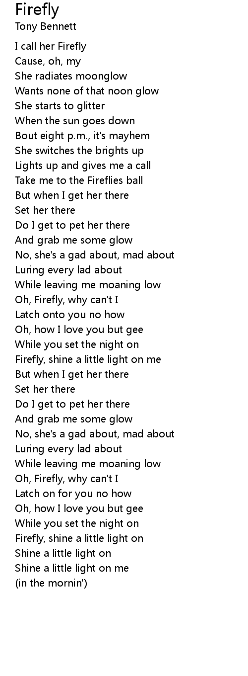 Firefly, shine a little light on me |