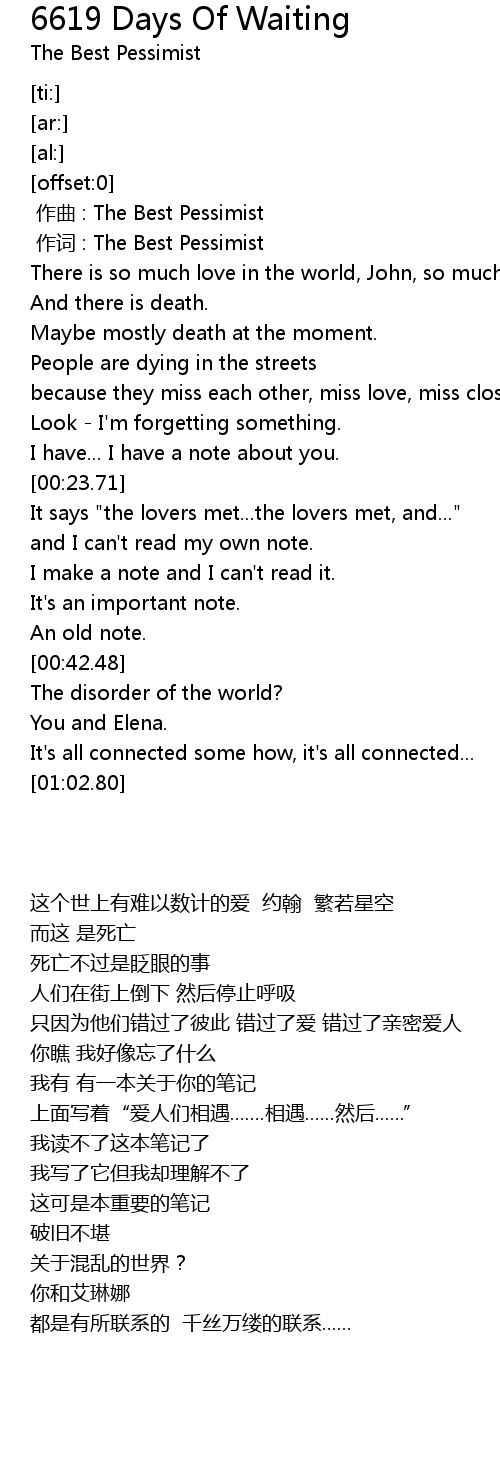| [00:01.00] | 作词 : The Best Pessimist |