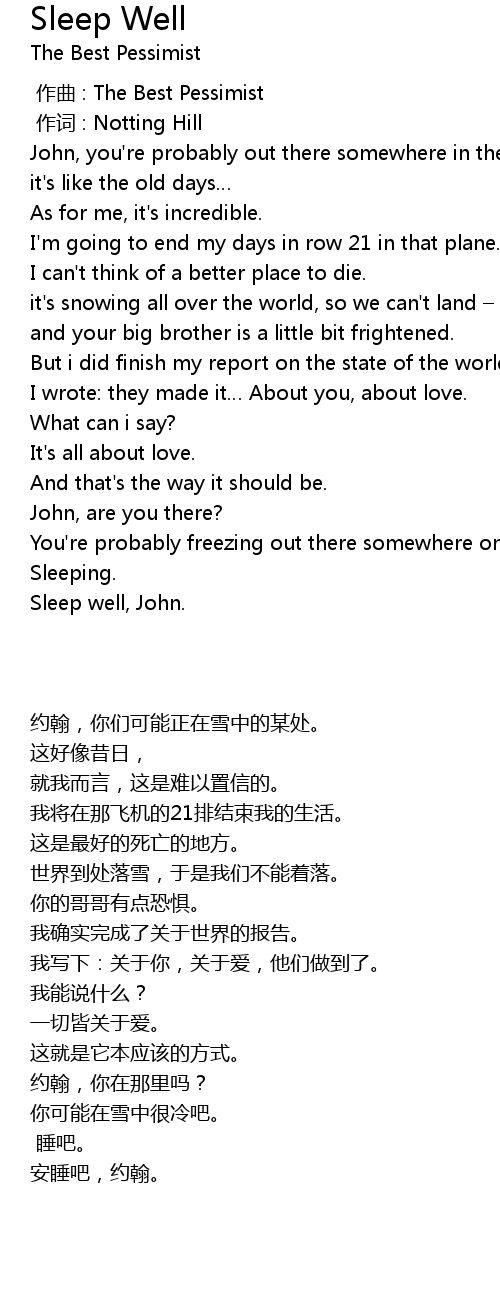 | [00:00.00] | zuo qu : The Best Pessimist |