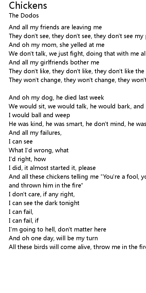 And all these chickens telling me "You're a fool, you're a liar, should've up and thrown him in the fire" |