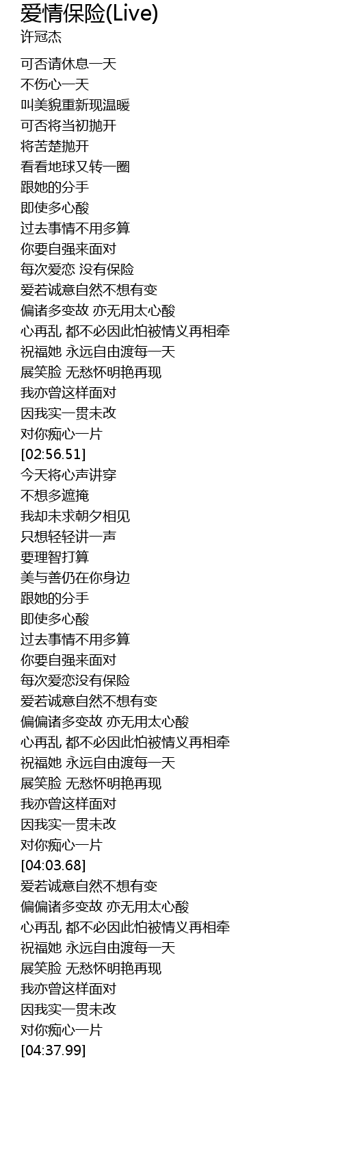 | [03:25.63] | měi cì ài liàn méi yǒu bǎo xiǎn |
